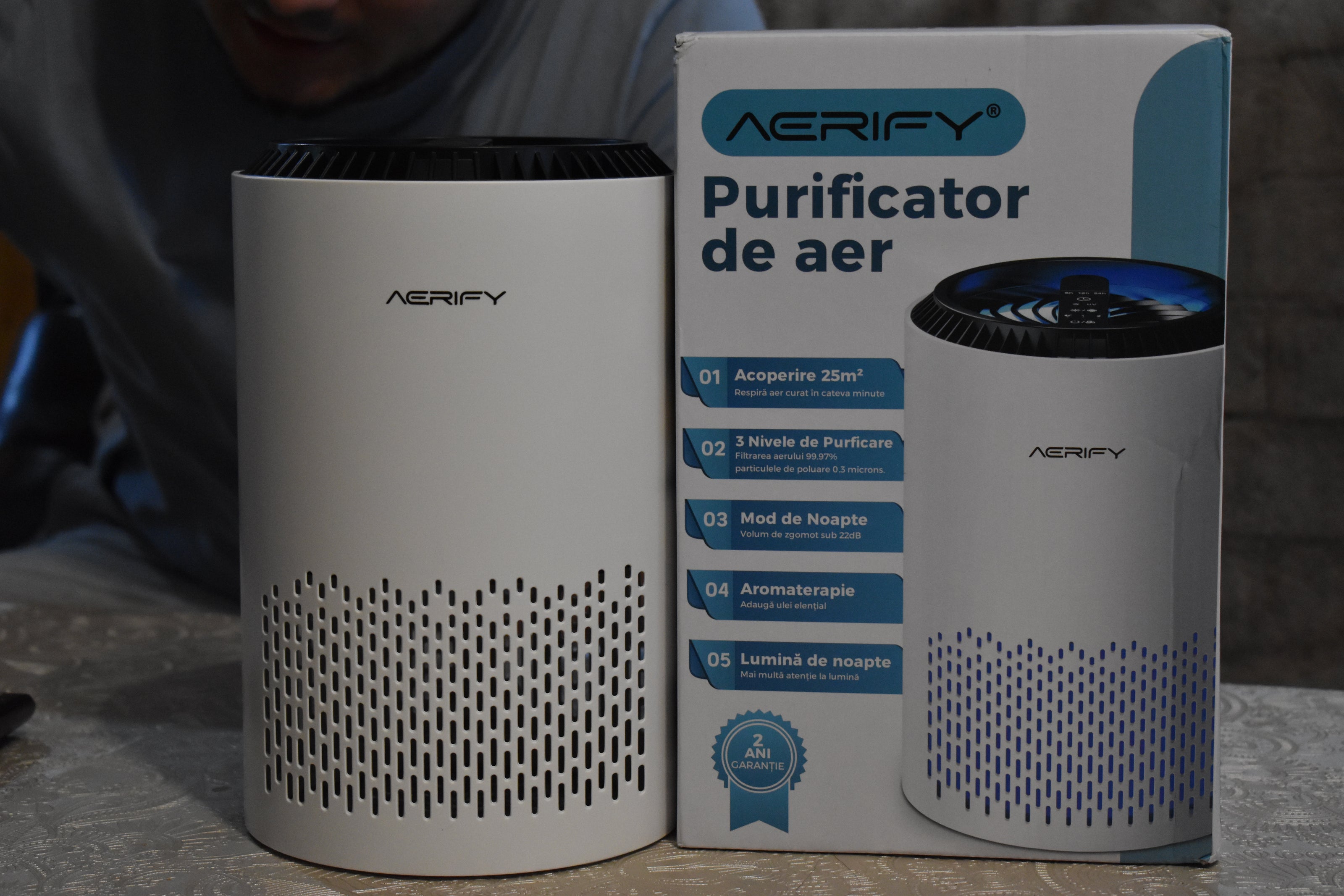 1 x Purificator AERIFY + 2 x Filtru HEPA Carbon activ